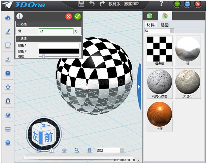 圖2:3DOne教育版提供了應(yīng)用樂趣:自由選擇材質(zhì)