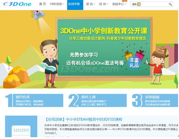 小編還了解到,不僅是3DOne軟件本身具有眾多適合青少年使用習(xí)慣的亮點(diǎn)功能,而且在其i3DOne社區(qū)上,還有系統(tǒng)化配套的中小學(xué)3D打印設(shè)計(jì)創(chuàng)意課程,包括在線學(xué)習(xí)公開課程http://www.i3done.com/news/school/train.html,而且還有大量的語音教學(xué)視頻、教學(xué)案例、圖紙模型,讓學(xué)生可以即時(shí)參加線上培訓(xùn),與名師互動(dòng)探討交流。3DOne家庭版和教育版均可暢享這些資源,在爸爸媽媽的指導(dǎo)下體驗(yàn)3D創(chuàng)意樂趣。