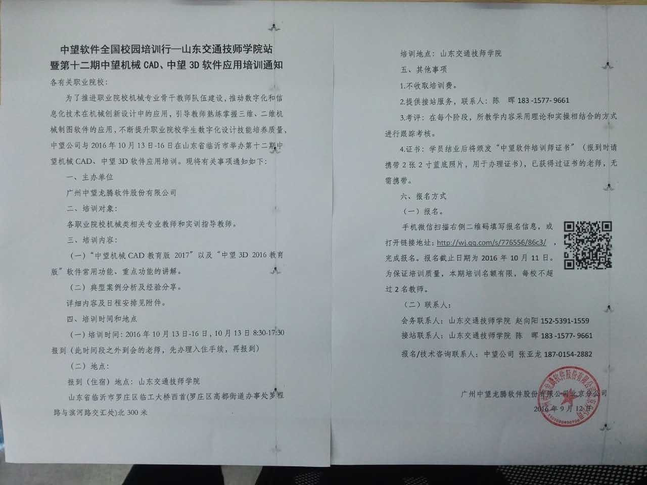 為了推進(jìn)職業(yè)院校機(jī)械專業(yè)骨干教師隊(duì)伍建設(shè),推動(dòng)數(shù)字化和信息化技術(shù)在機(jī)械創(chuàng)新設(shè)計(jì)中的應(yīng)用,引導(dǎo)教師熟練掌握三維、二維機(jī)械制圖軟件的應(yīng)用,不斷提升職業(yè)院校學(xué)生數(shù)字化設(shè)計(jì)技能培養(yǎng)質(zhì)量,中望公司于2016年10月13日-16日在山東省臨沂市舉辦第十二期中望機(jī)械CAD、中望3D軟件應(yīng)用培訓(xùn)?,F(xiàn)將有關(guān)事項(xiàng)通知如下: