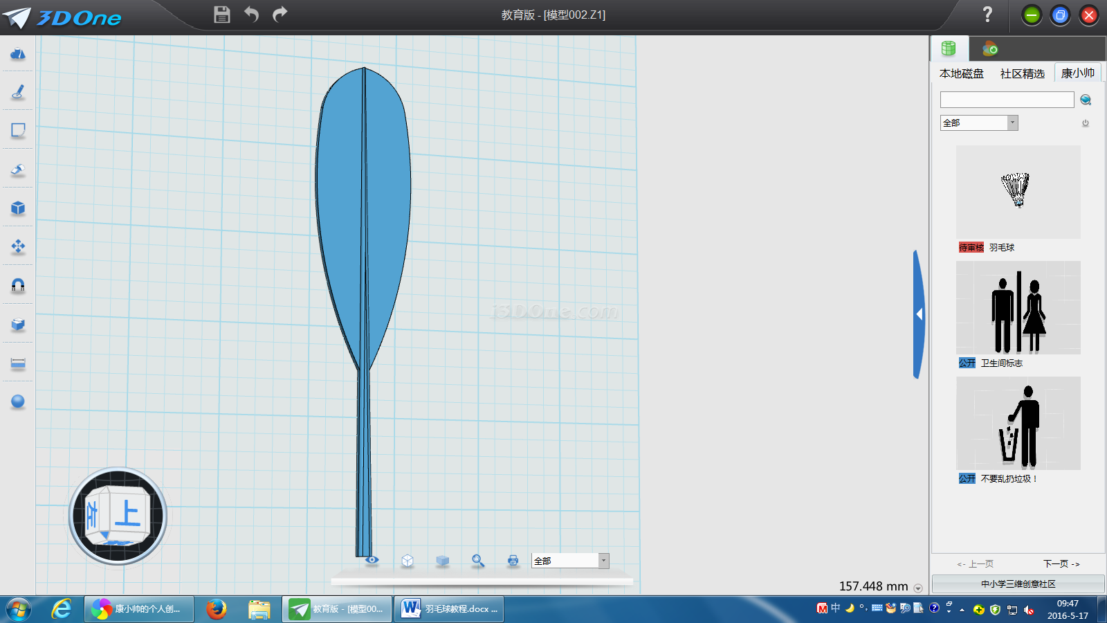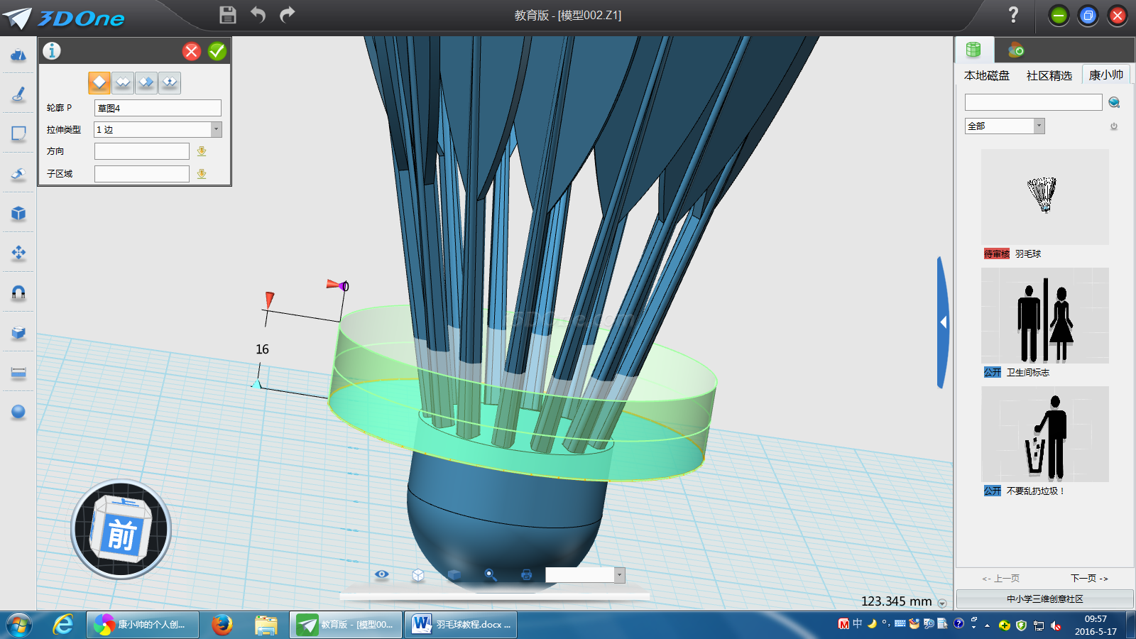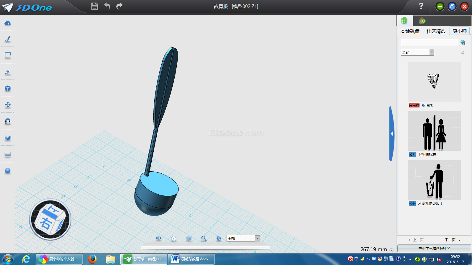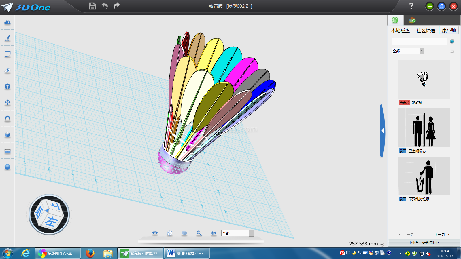 羽毛球的基本形狀就已經(jīng)完成了,那么下面我們就進(jìn)行環(huán)形桿的繪制。