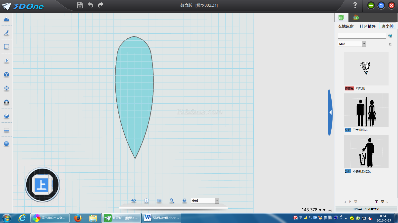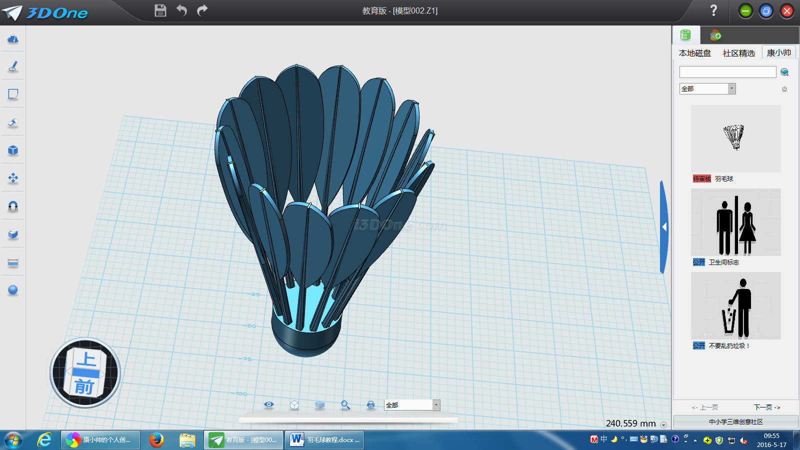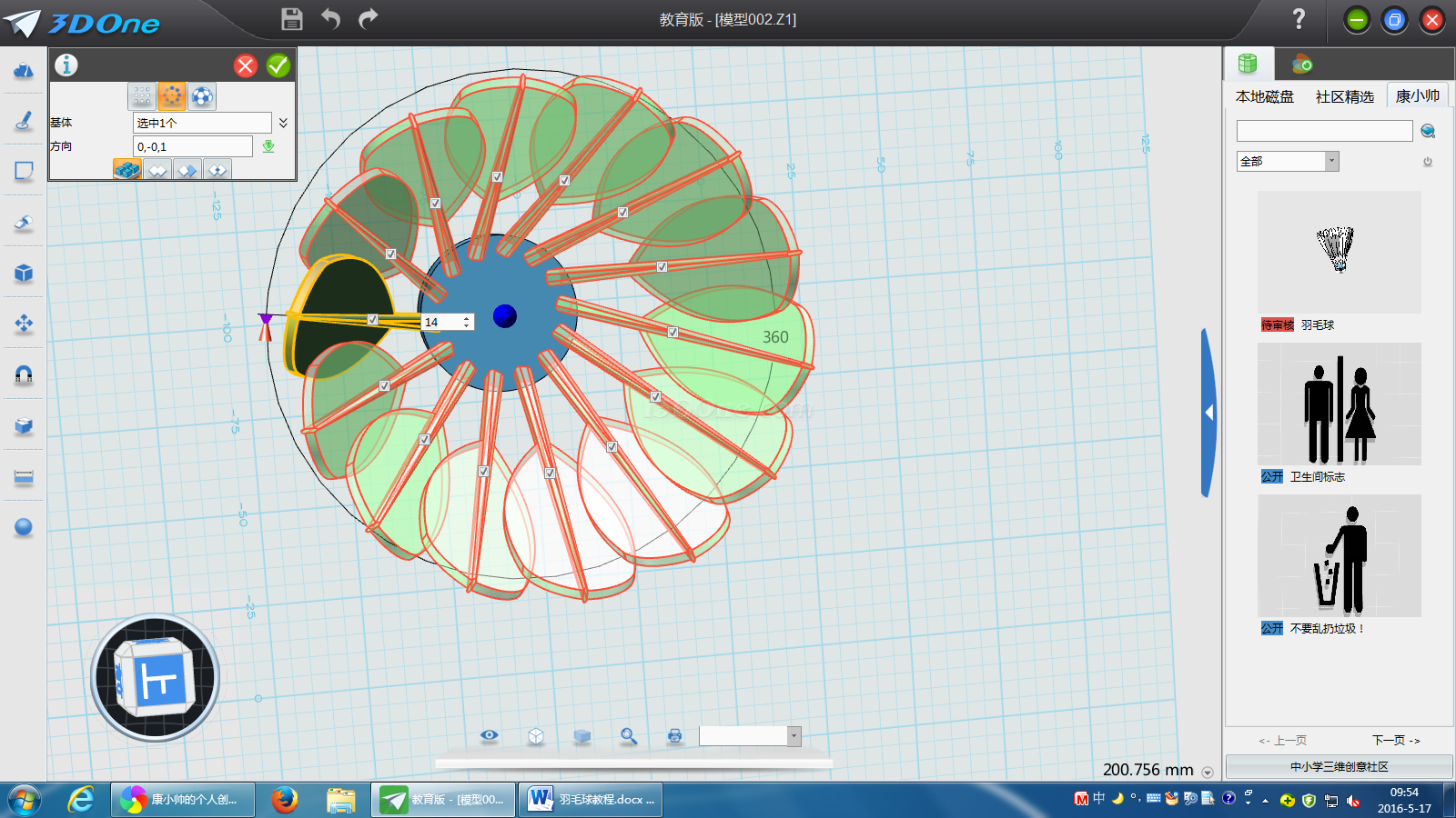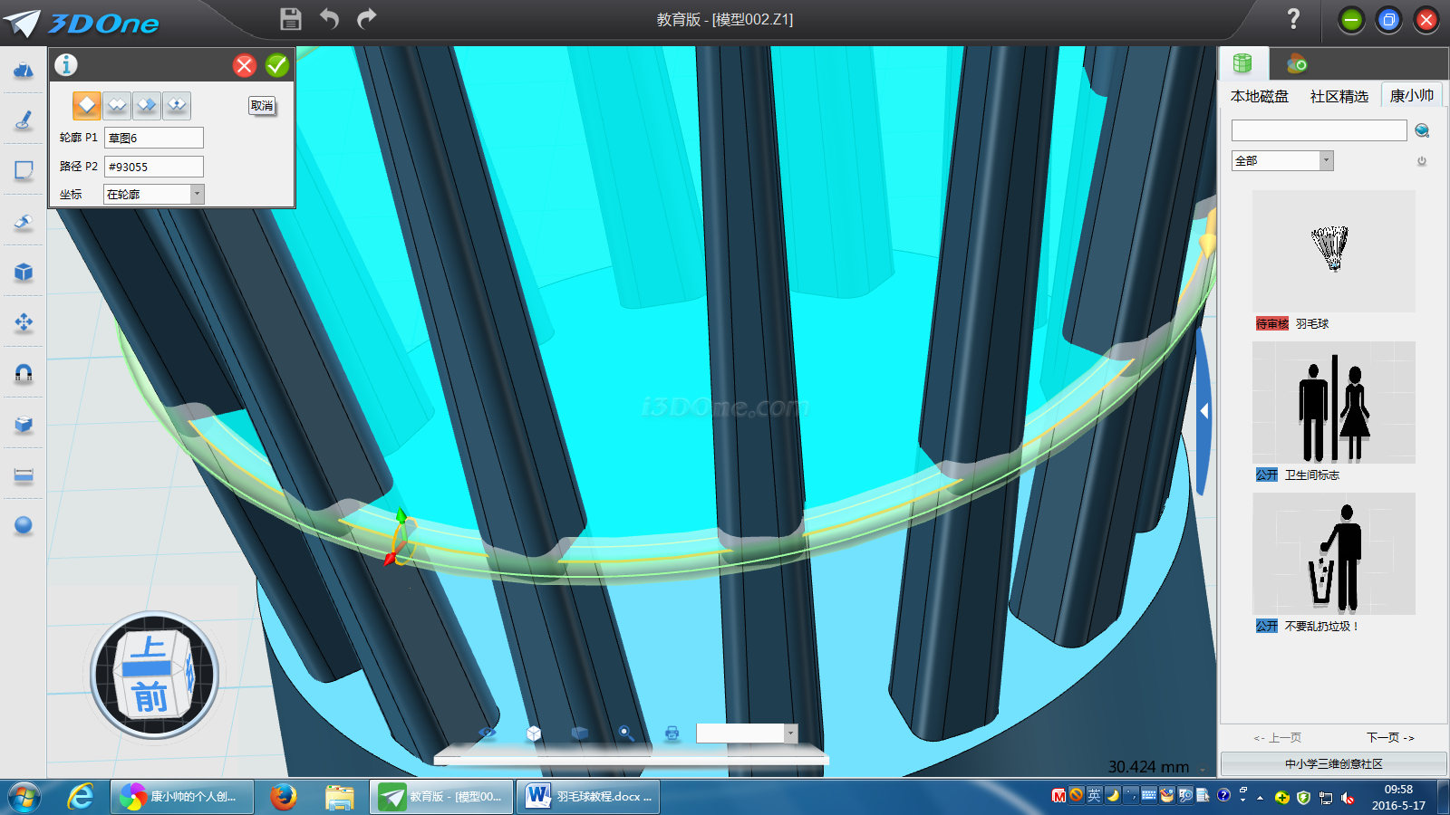羽毛球的基本形狀就已經(jīng)完成了,那么下面我們就進(jìn)行環(huán)形桿的繪制。