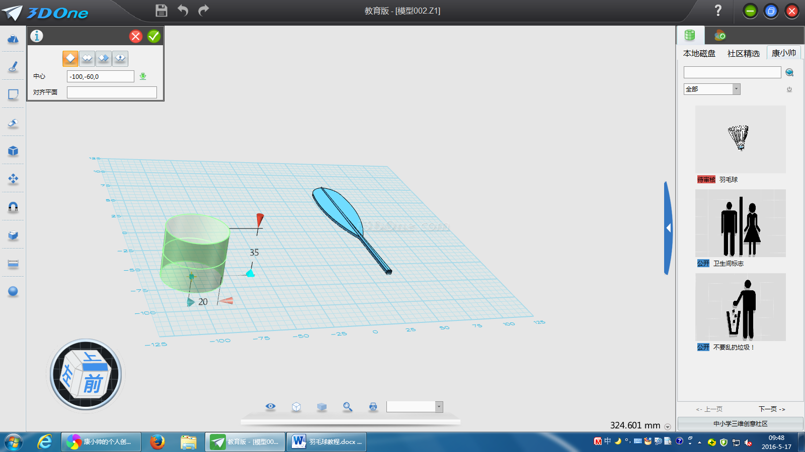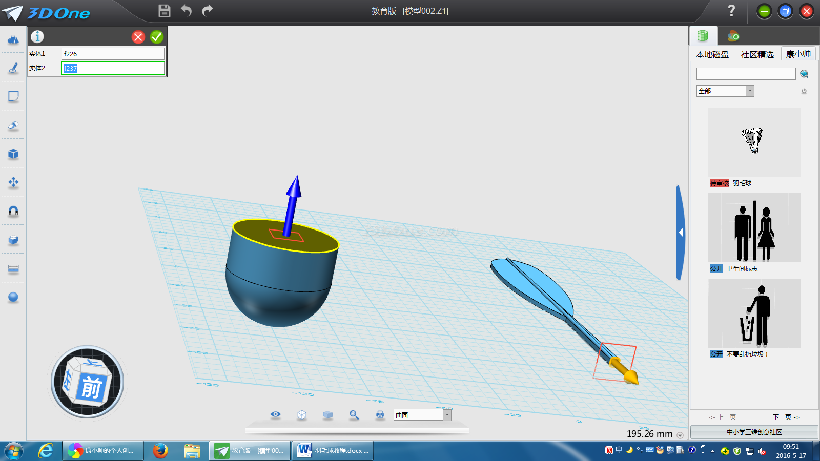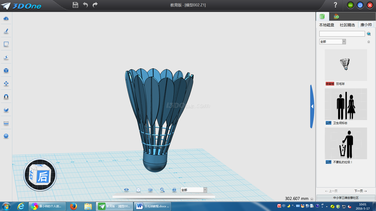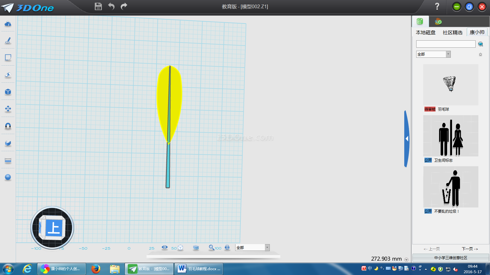 羽毛球的基本形狀就已經(jīng)完成了,那么下面我們就進(jìn)行環(huán)形桿的繪制。