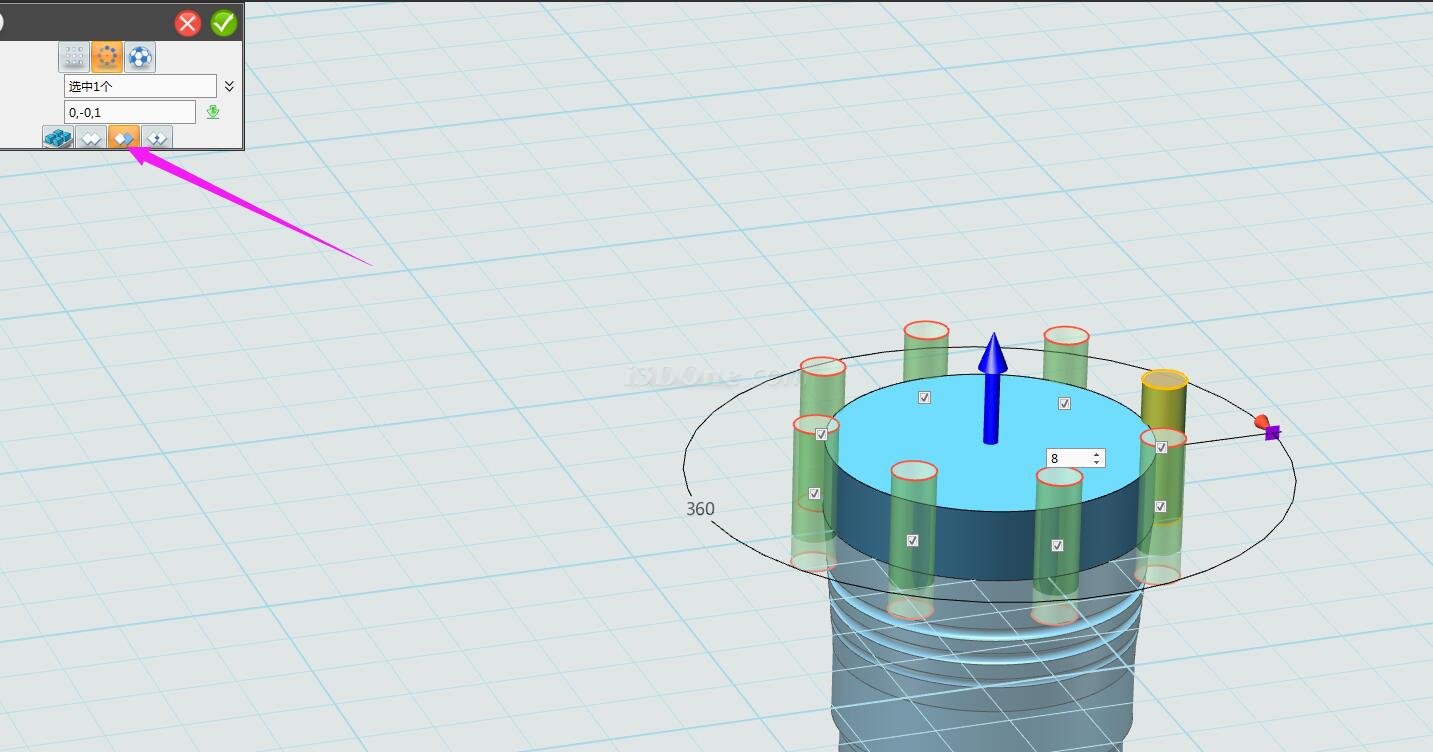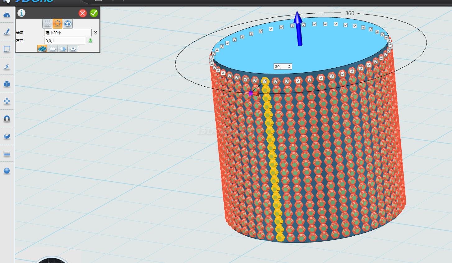 圓柱做好之后,做手柄中間的防滑小點(diǎn)。